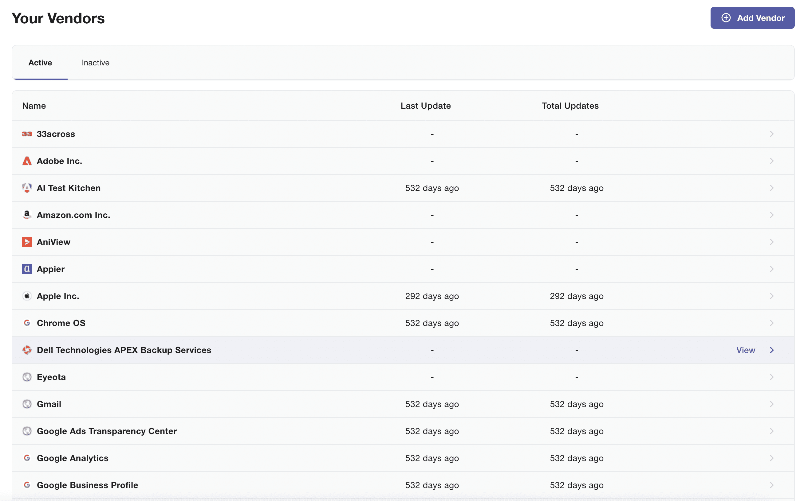 We automatically monitor vendors’ legal documents (Terms, Privacy Policies, Agreements) 24/7. No manual setup needed